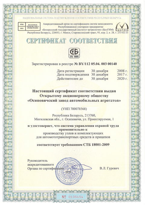 С 2005 года крупнейшие машиностроительные предприятия Республики Беларусь признают ОАО «ОЗАА» как приоритетного поставщика.