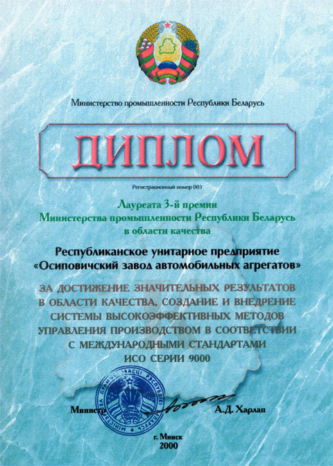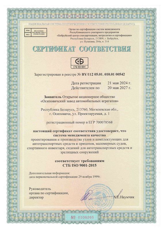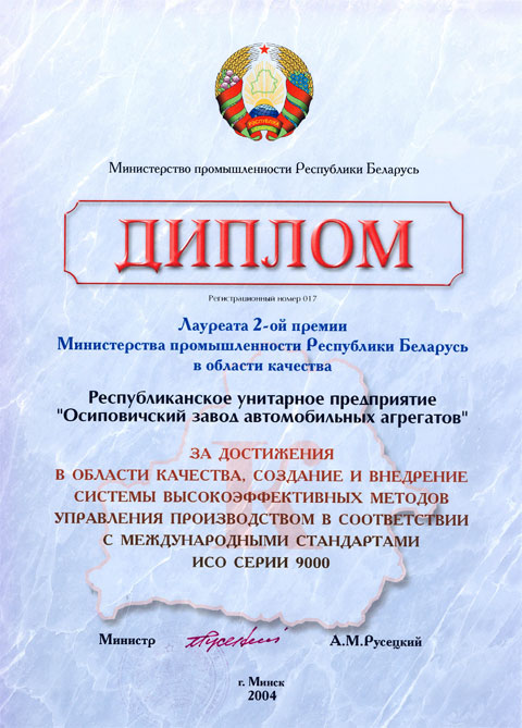 Система менеджмента качества, действующая в открытом акционерном обществе «Осиповичский завод автомобильных агрегатов» - это современный инструмент управления, обеспечивающий постоянное улучшение качества выпускаемой продукции за счёт анализа и совершенствования на предприятии бизнес-процессов и повышения компетентности персонала.