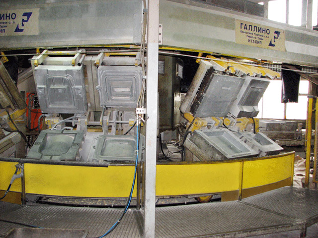 Производство ППУ осуществляют на заливочных установках высокого давления методом заливки двухкомпонентной полиуретановой композиции в формы различной конфигурации, где происходит вспенивание и отверждение ППУ.