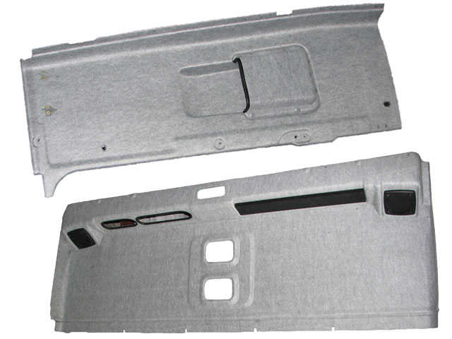 Детали из многослойных обивок изготавливаются путем прессования составляющих: древеснонаполненный полипропилен, изолон, полотно холстопрошивное.